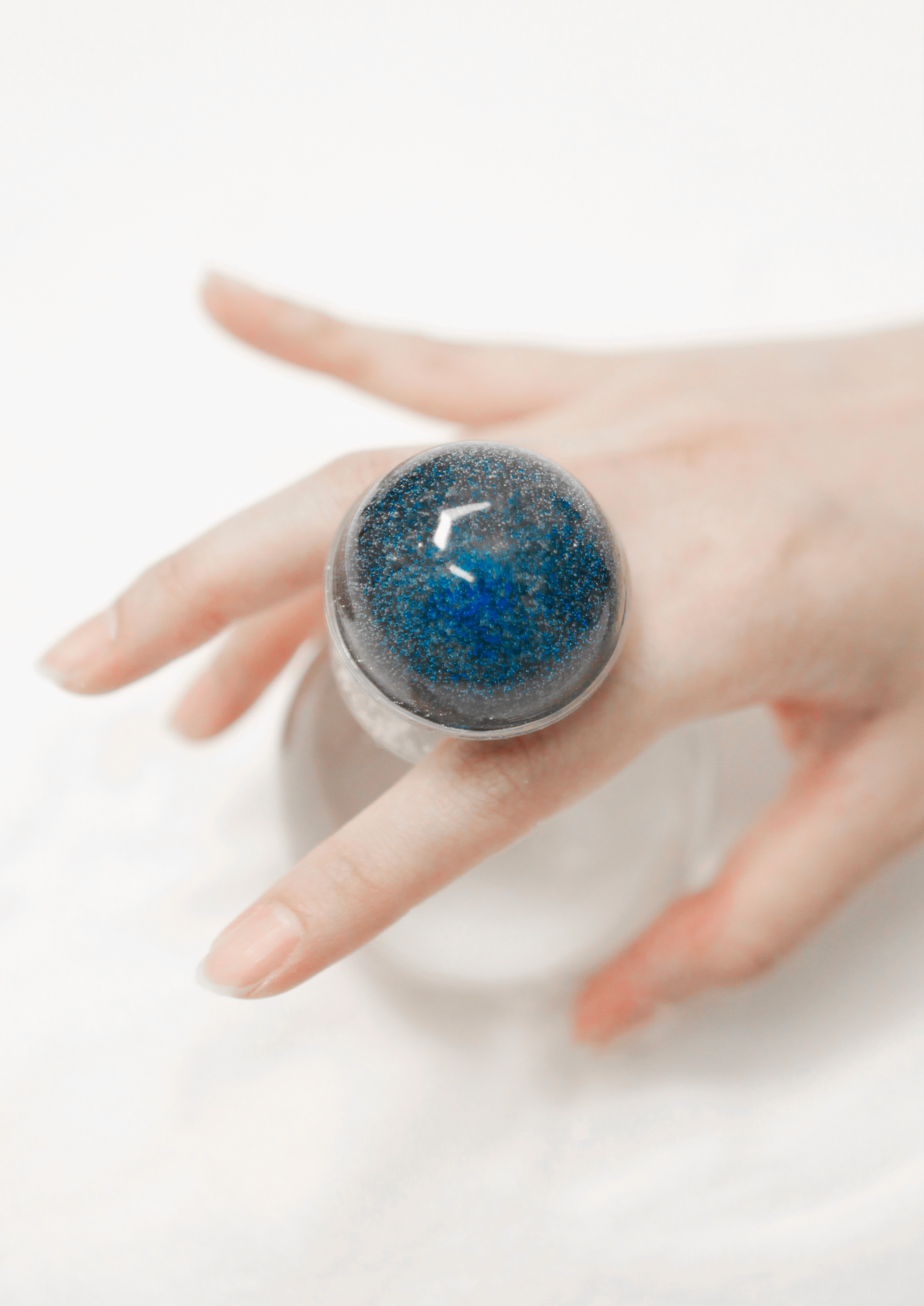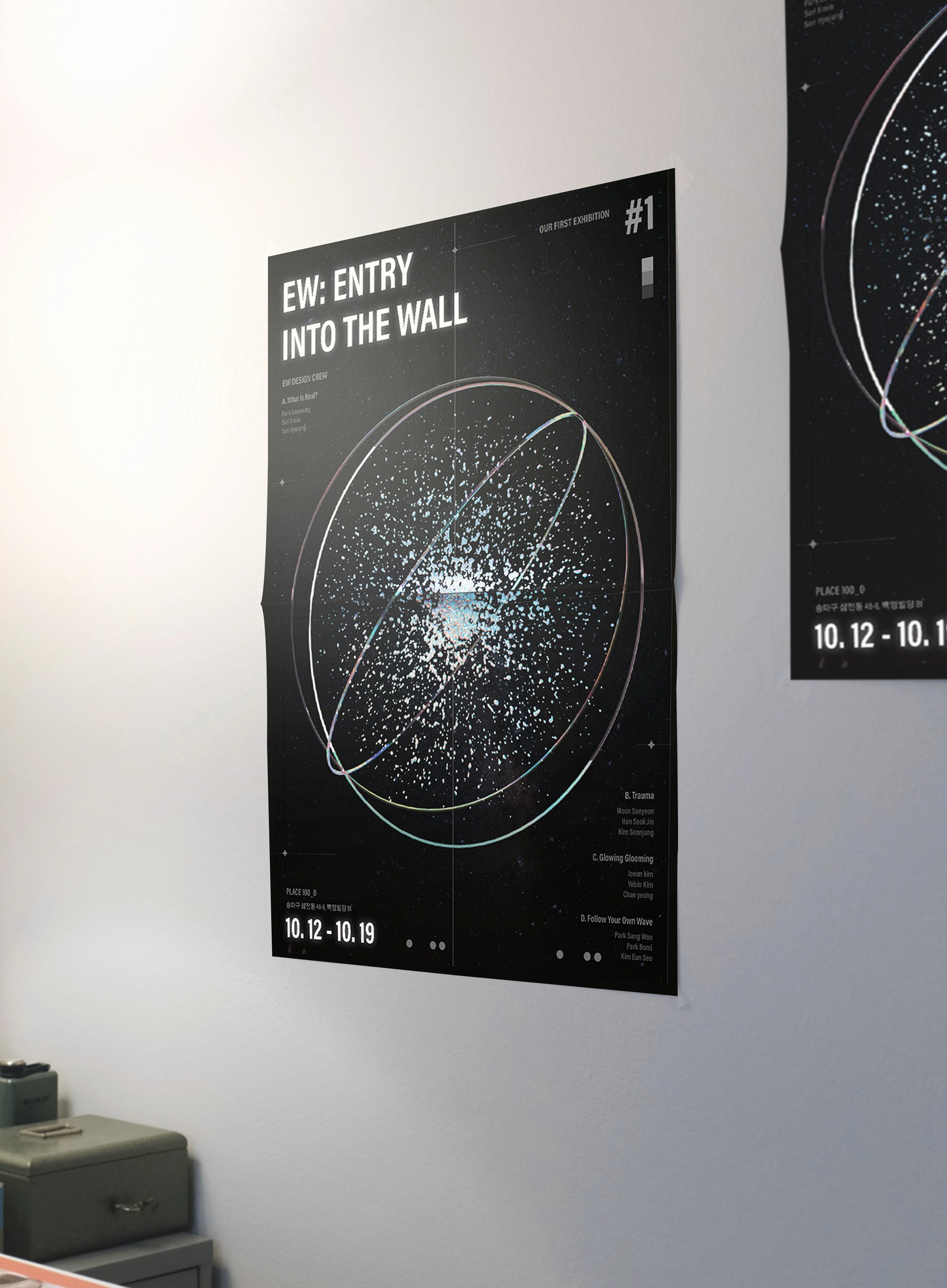 To create the holographic pop socket, I first rendered the animated holographic elements from the exhibition poster in various forms, then printed them in a circular layout. These were embedded onto resin base, which was cast and hardened in a circular mold. Finally, the printed hologram was attached to a dome-shaped resin piece, completing the pop socket with a three-dimensional, reflective effect.